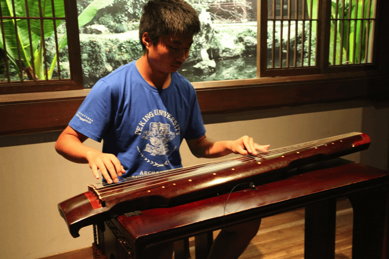 在古琴的展厅中,4组的杨昱浩同学为大家现场演奏,如芙蓉泣露、昆山玉碎之声。其实,咱们17组的方老师也是一位古琴高手,可以私下切磋一下哦!