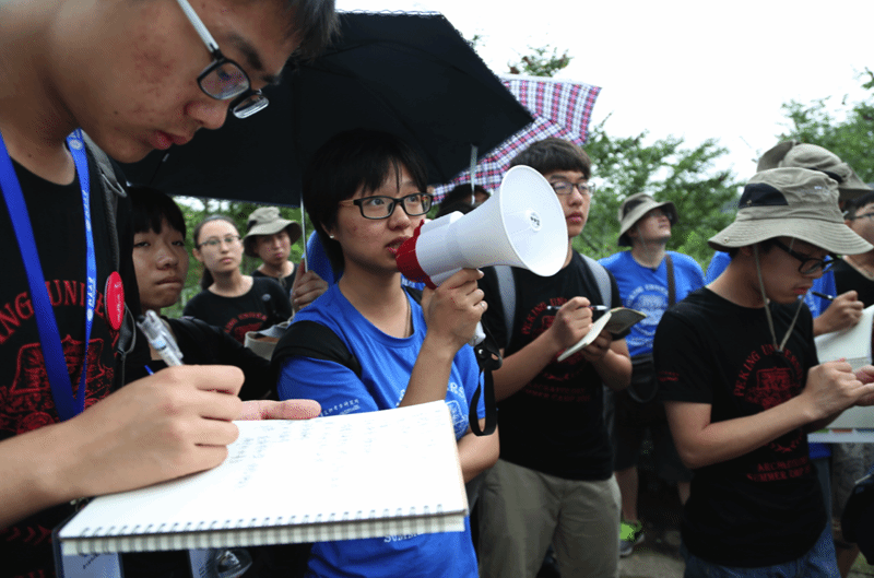 本次夏令营的总领队孙庆伟老师每天都会更换大巴乘坐,希望能与每位同学有更近距离的交流。孙老师以一贯的幽默又不失风度的方式鼓励大家坚持北大梦,更要在人生的道路上学会做一个“靠谱”的人。孙师向大家说明了有关北大的招生政策,却又劝告孩子们不要过分担心考核,上帝为你关上了一扇门,但他可能又为你打开一扇窗,实在考不上北大,可以去清华嘛!这句玩笑逗得满车同学哄然大笑,其实同学们不知道,这样的玩笑经常出现在北大清华两校的师生间,反倒是促进了两所兄弟院校的友情呢!