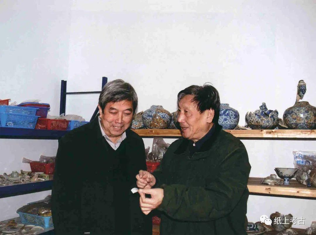 图十七 2009年权奎山教授(左)与刘新园先生(右)在景德镇研究御窑遗址出土瓷器