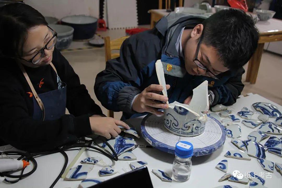 图十五 北京大学考古文物保护技术专业同学进行御窑瓷器修复