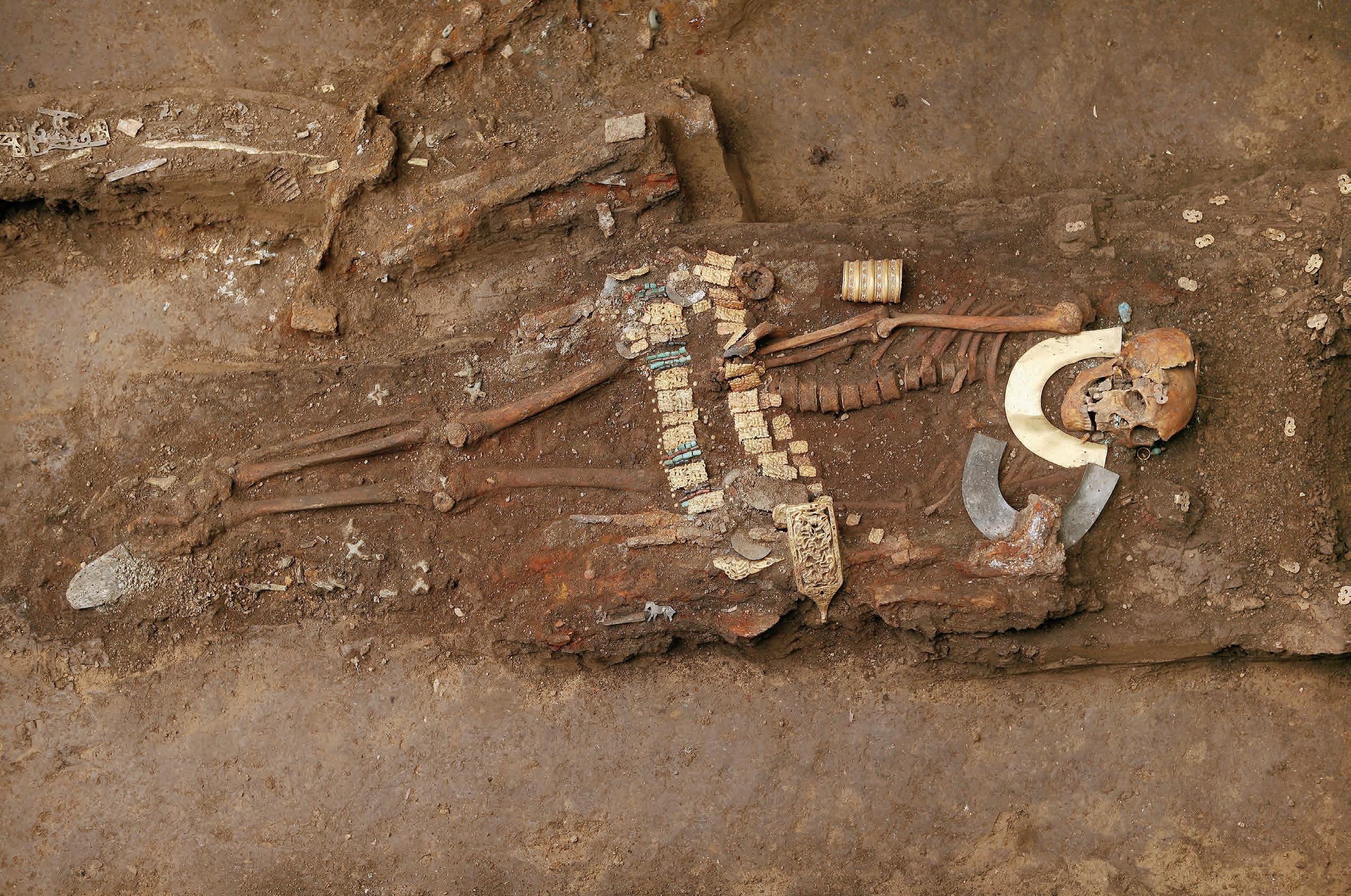 墓主人多有复杂的身体装饰,头部有以圆形金片和绿松石、肉红石髓珠子组成的发网;颈部戴金、银项圈或以金管及费昂斯、肉红石髓、绿松石等珠子组成的项链;耳饰为多节饰件组合的耳环;有的手臂带有金或银臂钏;腰带以金、银、铜、锡质带饰和金银泡、珠子等装饰,个别墓主人有三条腰带, 腰带两侧悬挂以各类珠子组成的复杂装饰;部分裙子或衣袍下摆也以珠子装饰;鞋部装饰发现有珠饰和银鞋底。