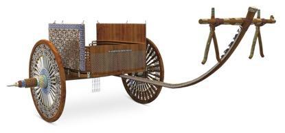 在车辆结构、力学性能的认识以及原工艺、原材料对古代车辆复制上有创新和突破,创新了古代车辆复制方法,解决了车辆的实用性和礼仪性问题,对中国古代车辆的力学性能和传动方式的认识有了进一步深化。对车辆主要承力构件建立了ANSYS有限元模型,对其静力学特性进行了模拟分析,并将有限元计算结果与实际测量结果进行了对比分析,为将来车舆的清理和复原制定相应的技术标准和规范提供了依据。基本解决了古代车辆的结构和装配方法,形成了一套科学、完整古代车辆的装配流程,以原材料、原工艺复制完成了马家塬出土的两辆车辆,并制作了用于展示的三维视屏。