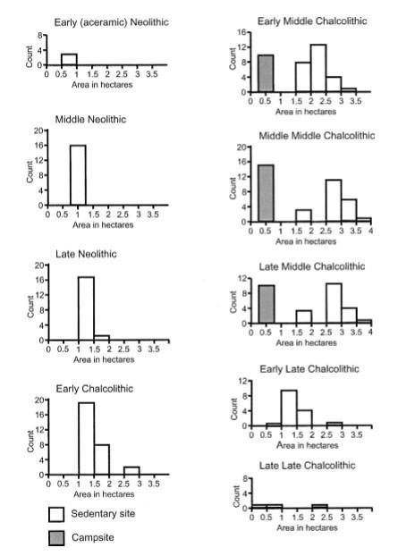 伊斯兰堡平原从新石器时代早期至铜石并用时代末期不同规模聚落数量分布