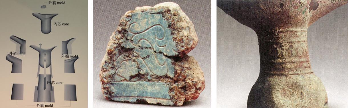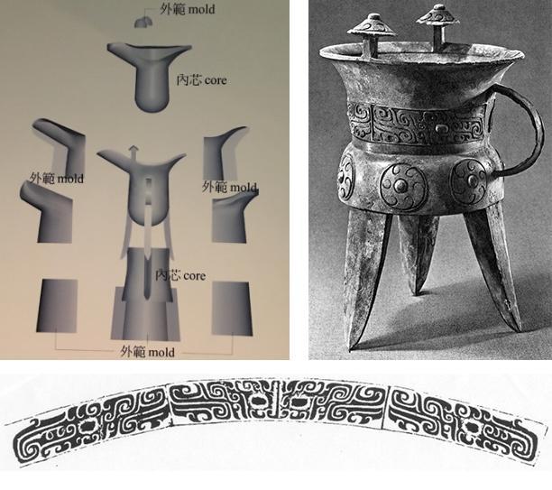 首先,针对最早的一式风格,贝格利引入技术手段,阐明最早的纹饰为什么是阳线细纹。由于采用分范法进行铸造,只需在每块范的内壁刻划花纹,就可以在青铜器的表面得到凸起的细弦纹。
