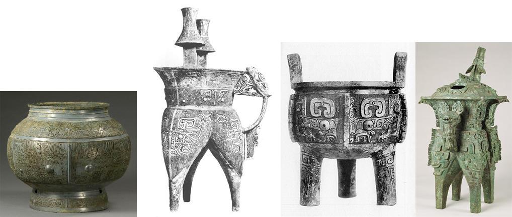 1城固出土瓿 2卢芹斋藏斝 3Trautmann藏鼎 4根津博物馆藏盉