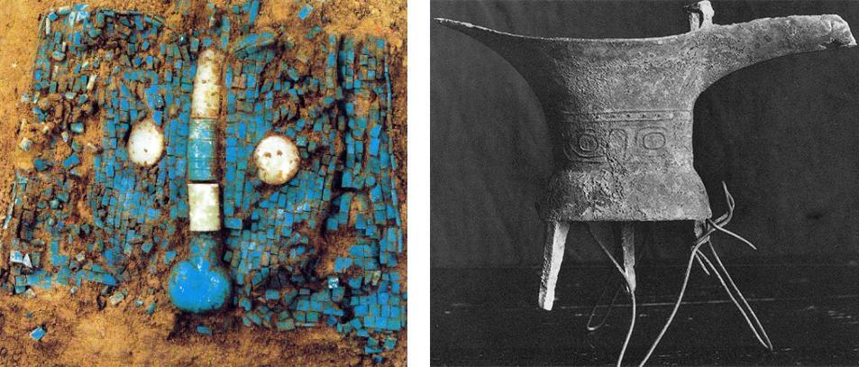 1爵的铸型 2盘龙城出土斝 3盘龙城斝器身纹饰展开图