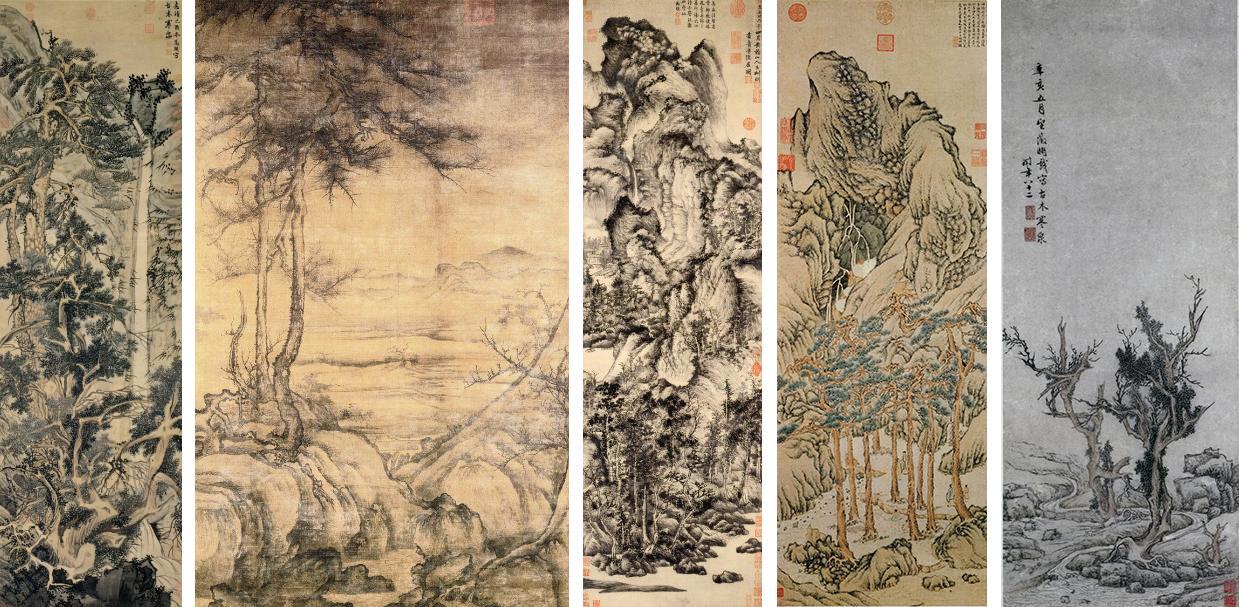 1文徵明《古木寒泉》(1549年)2李成《双松平远》