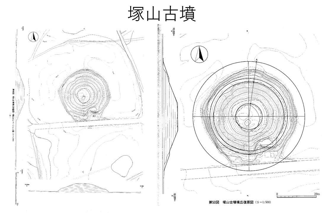 塚山古坟坟丘测量图与复原图