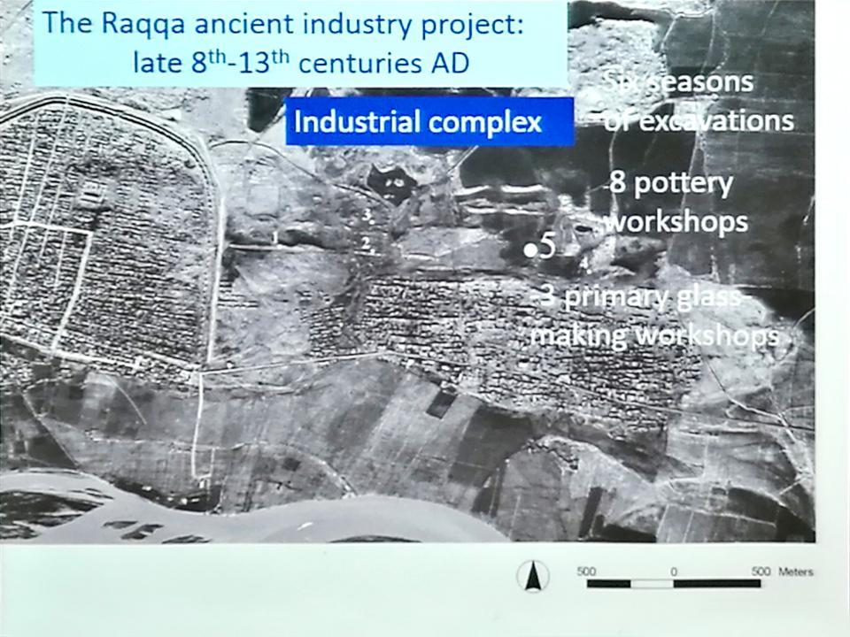 接下来,汉德森教授介绍了公元9世纪以来叙利亚地区重要的玻璃生产遗址Raqqa。Raqqa遗址是世界上最大的遗址之一,也是一处综合的手工业生产中心。这里共发现3处初级玻璃生产作坊。该遗址为玻璃生产研究提供了重要的背景信息。