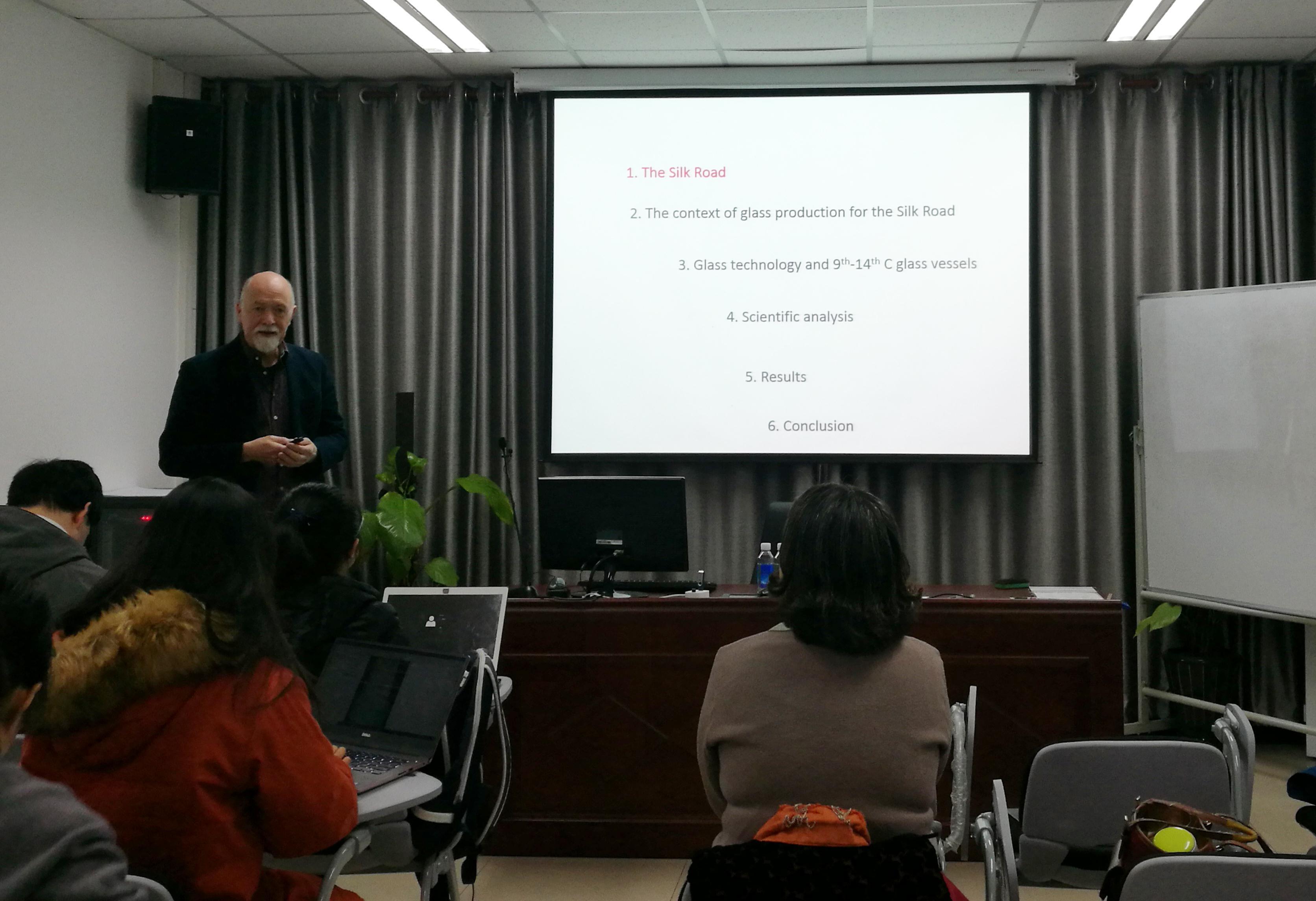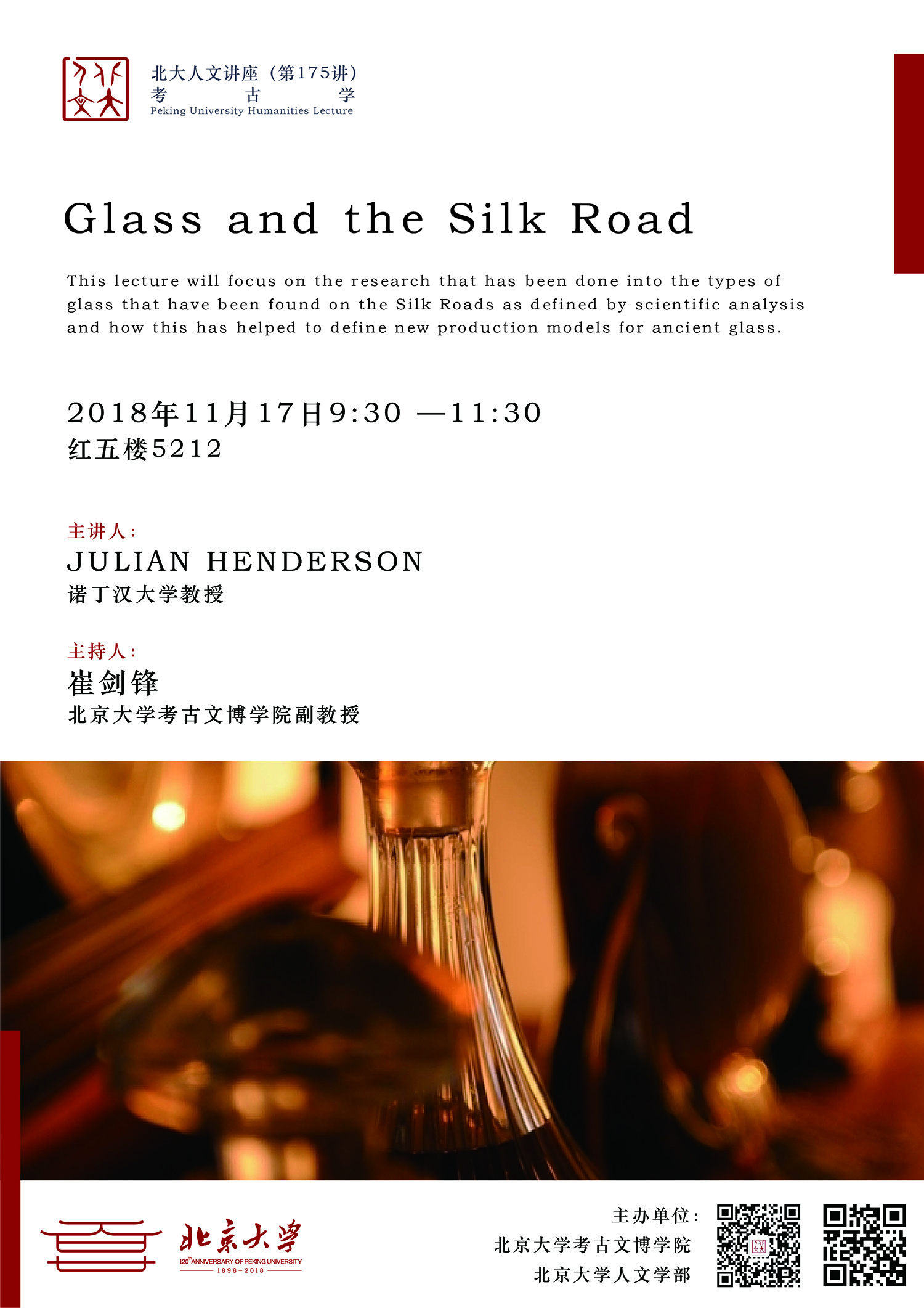 2018年11月17日,来自英国诺丁汉大学的朱利安·汉德森教授在北京大学考古文博学院做了题为“玻璃与丝绸之路”(Glass and Silk Road)的精彩讲座。讲座聚焦于公元9世纪以来丝绸之路沿线经科技分析的各类玻璃器,其中包含了西亚、中亚以及中国发现的玻璃,并且深入探讨了如何以此建立新的古代玻璃生产模式。讲座由北京大学考古文博学院崔剑锋副教授主持。