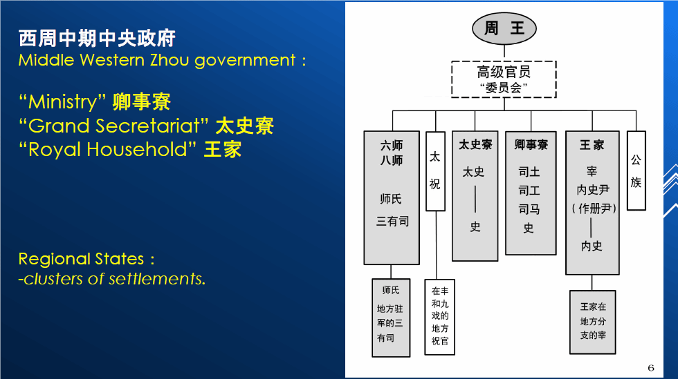 在此认识基础上,李峰教授结合金文资料讨论了西周国家和政府的基本特点。他指出,西周中期以来,王朝行政已经出现了由卿事寮、太史寮、王家构成的“三分结构”,形成了官僚系统。其中卿事寮作为一个常设政府机构的出现,具有划时代意义;太史寮保证了文书功能的系统化和阶层化;王家行政的独立则可视作一个成熟国家的标志。周王作为现世的统治者,掌控西周政府,对下属进行分封、册命。周人的天命观念和血缘、婚媾关系,构成了国家统治政治权力的基础。