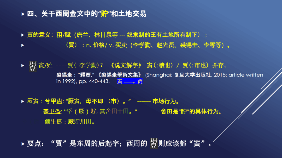 第三个问题关于西周金文中的“貯”和土地交易。西周金文中的“