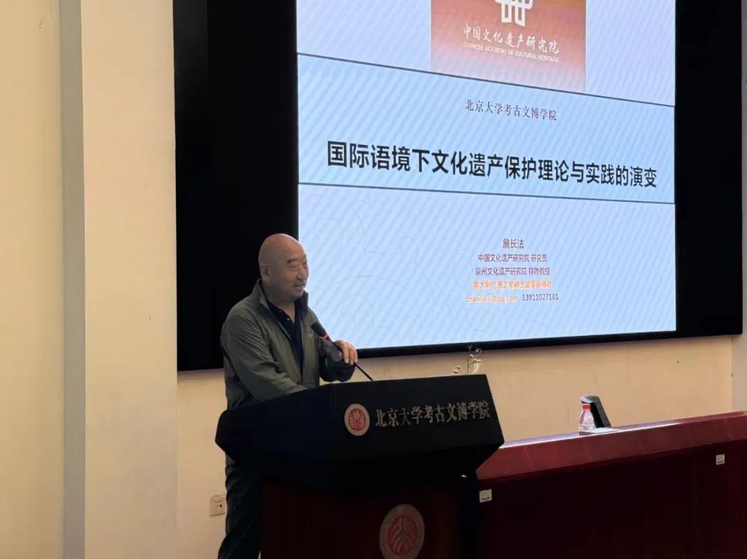 2024年9月27日上午,北京大学考古文博学院研究生课程《考古学研究》系列讲座秋季学期第二讲《国际语境下文化遗产保护理论与实践的演变》在考古楼A101举行,由中国文化遗产研究院研究员詹长法主讲。