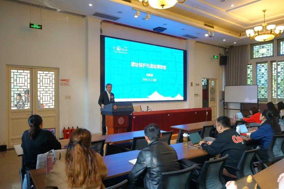 2024年11月1日上午,北京大学考古文博学院研究生课程《考古学研究》系列讲座秋季学期第五讲《遗址保护与遗址博物馆》在考古楼A座101室举行,由中国古迹遗址保护协会理事长宋新潮主讲。
