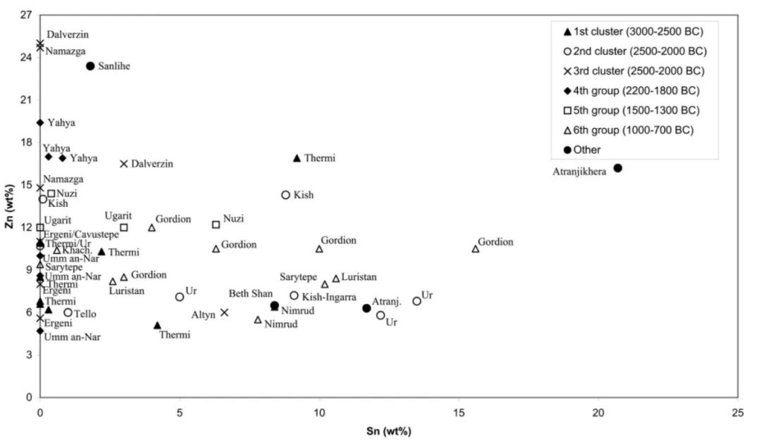 图二 西亚地区出土3000-700BC铜器(Thornton 2007)