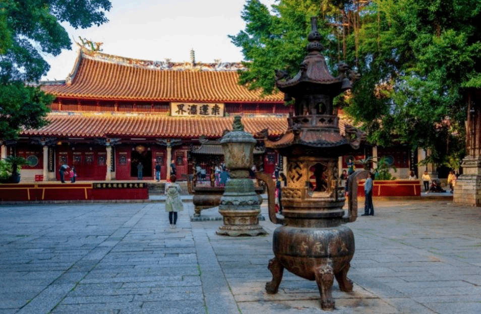 开元寺位于泉州子城西门外,南临城内东西向主街道。其始建于唐垂拱二年(686年),经历代兴扩,主体格局定型于宋元时期,寺院坐北朝南,主体建筑群沿中轴线分布,自南向北依次为紫云屏、天王殿与拜亭、拜庭及东西廊、大雄宝殿、甘露戒坛、藏经阁及其东侧檀越祠。东、西两侧矗立着镇国塔、仁寿塔两座宋代石塔,整体占地面积约8万平方米。