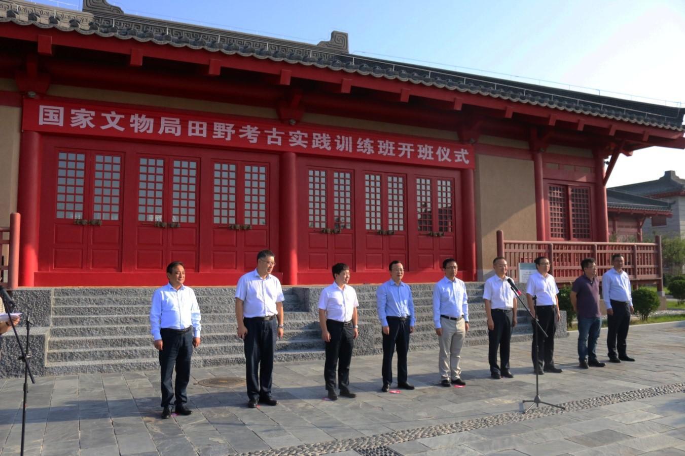 9月12日上午,国家文物局田野考古实践训练班开班仪式在陕西省宝鸡市周原博物馆举行。国家文物局文化保护与考古司副司长唐炜,考古处副处长王铮,陕西省文物局副局长周魁英,副局长贾强,陕西省考古研究院院长孙周勇,中共宝鸡市委常委、常务副市长马赟,宝鸡市文物旅游局局长陈小平,中共扶风县副书记、扶风县人民政府县长齐军建,中共扶风县委常委、宣传部长刘新龙以及各有关部门负责人出席仪式。发掘领队、北京大学考古文博学院副院长孙庆伟主持开班仪式。
