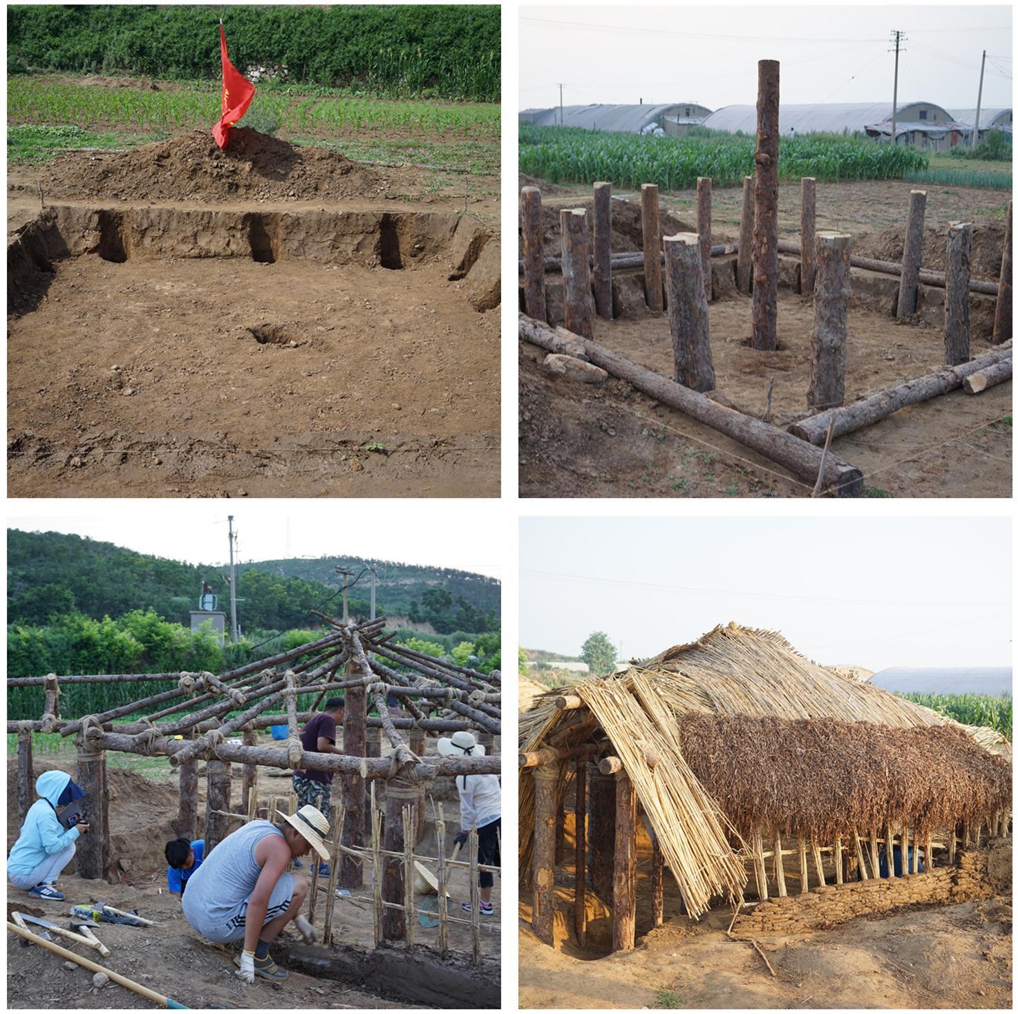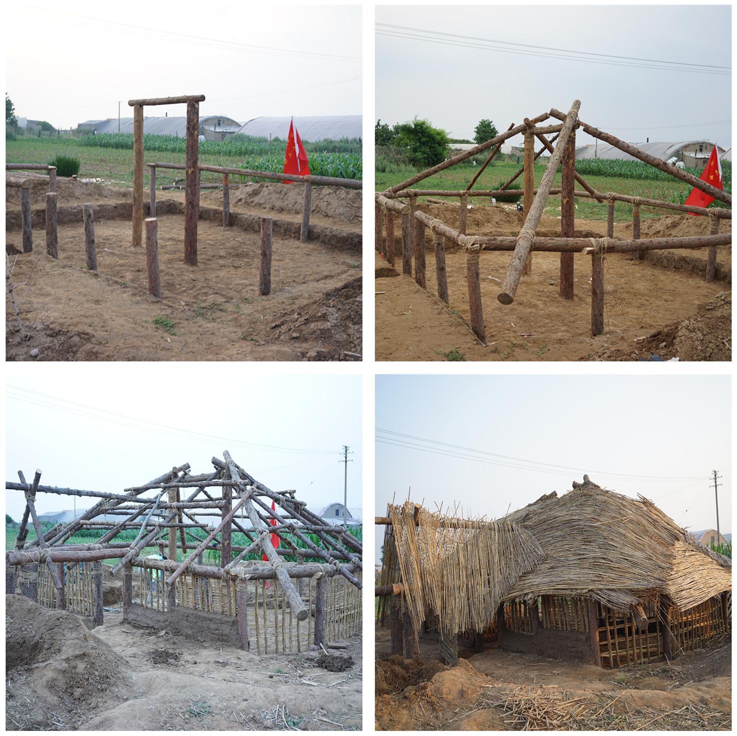 参与师生分成两组,在北庄遗址原址以北的土岛村,分别完成F16和F39两座房屋的搭建。F16是北庄遗址中最大的一座房址,F39则是平面、规模和结构具有普遍代表性的一座。工作过程中两组房屋注意互相对照,实验基本达到了预期效果。