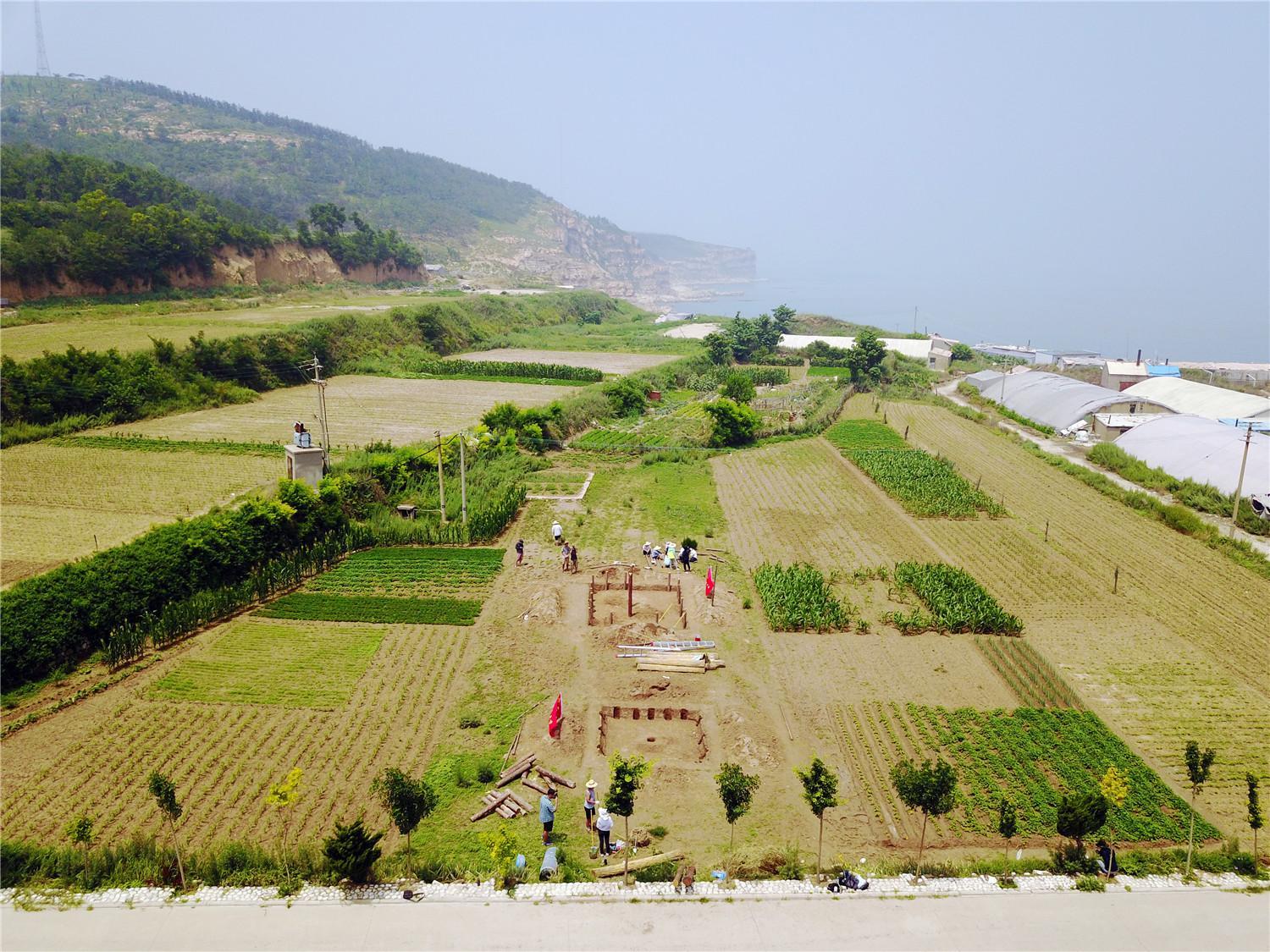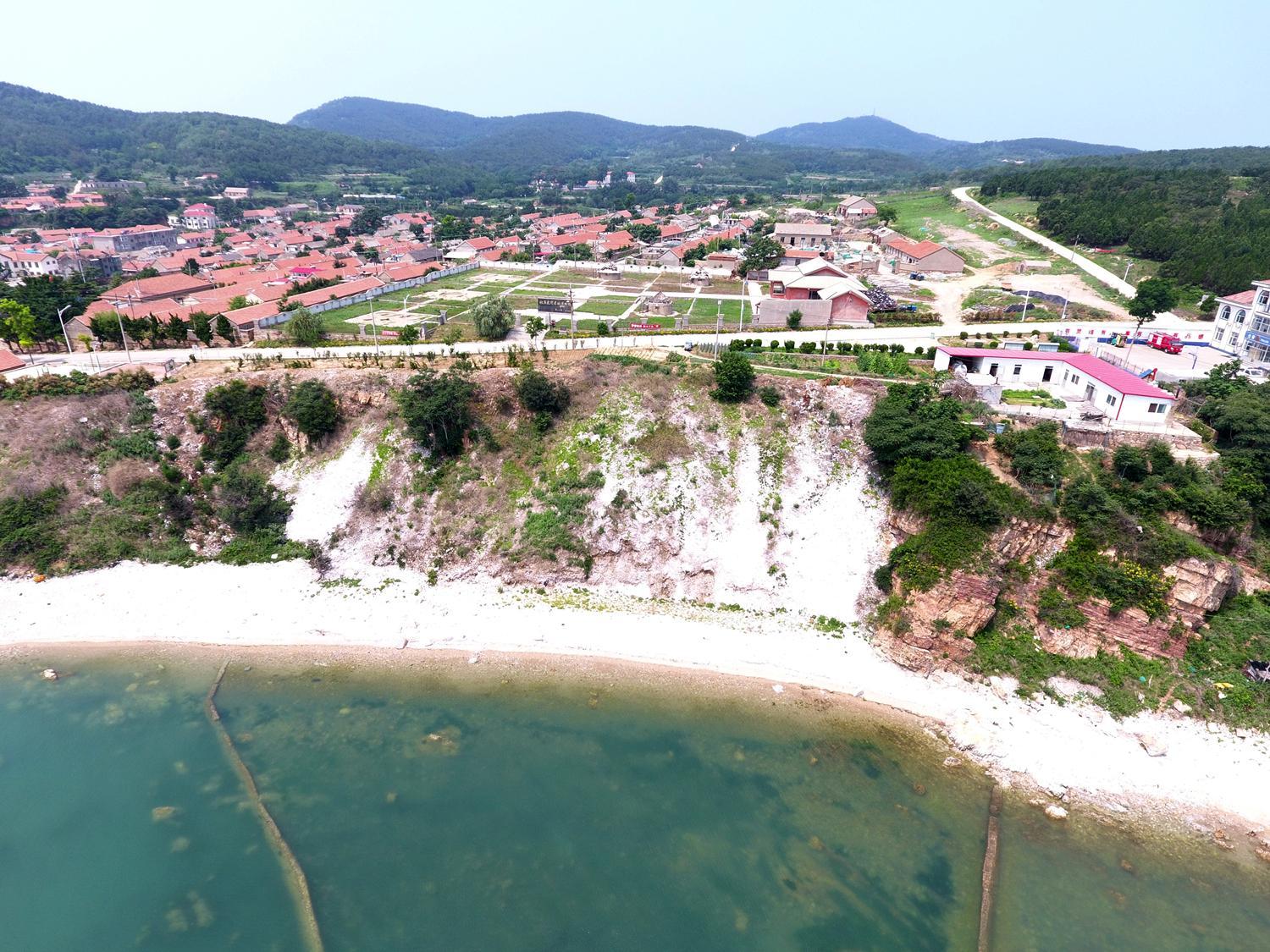北庄遗址(位于海边崖壁之上,发掘后已回填保护)现状鸟瞰
