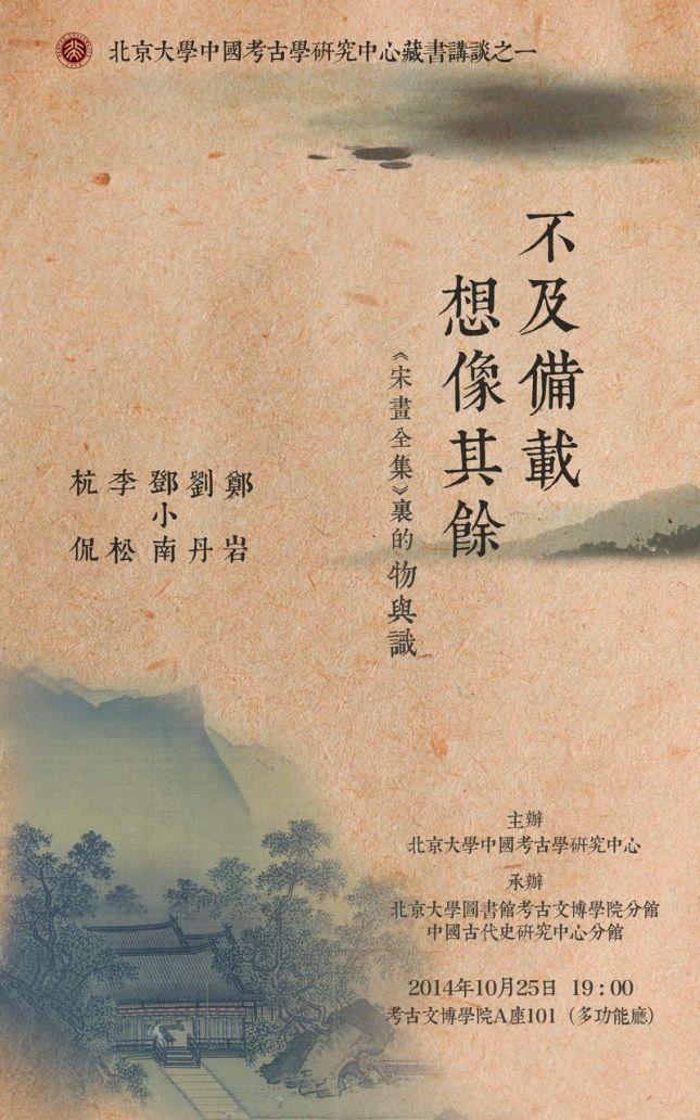 由北京大学中国考古学研究中心主办、北京大学图书馆考古文博学院分馆和中国古代史研究中心分馆联合承办的藏书讲谈活动于10月25日晚,在北京大学考古文博学院多功能厅举行。本期活动的主题为“不及备载 想象其余——《宋画全集》里的物与识”,由考古文博学院杭侃老师担任学术主持。伴随着帧帧宋画、悠扬琴音,受邀嘉宾中央美术学院郑岩老师、北京大学历史系邓小南老师、艺术学院李松老师和著名画家刘丹先生,围绕《宋画全集》一书的编辑与出版,历史、艺术和考古等学科对绘画材料的认识与使用等问题展开了精彩的讲谈。
