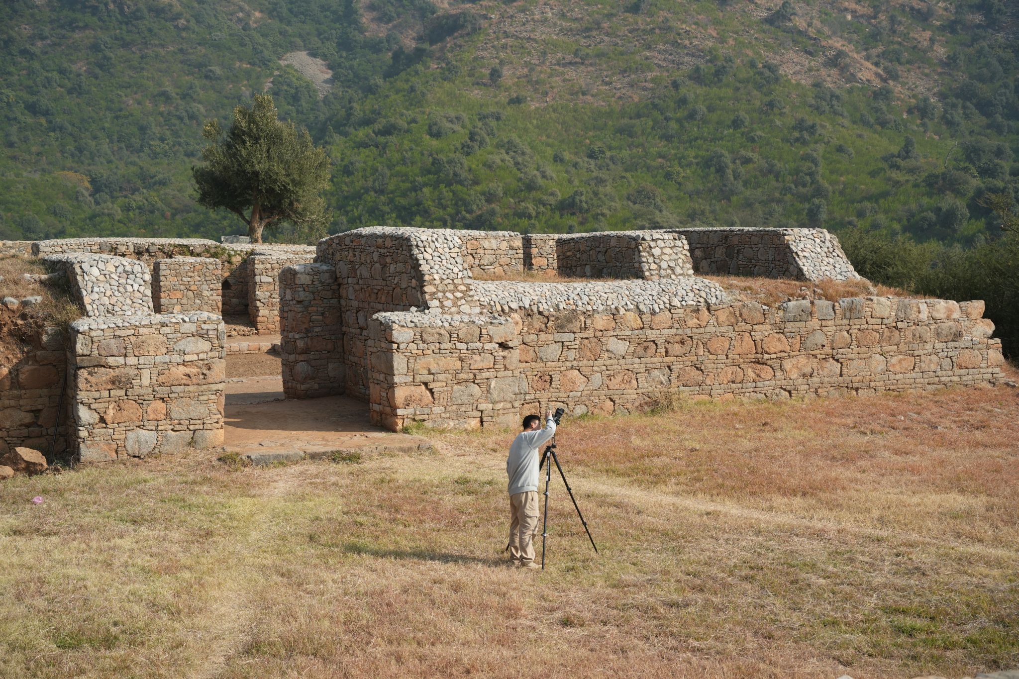 2025年11月16日至12月1日,我院彭明浩、魏正中率队赴巴基斯坦塔克西拉(Taxila)地区,与真纳大学Ghani-ur-Rahman教授开展联合考古调查工作。先后考察犍陀罗佛寺遗址16处,其中Dharamajika为大型佛教寺院建筑群,周围分布有Khadar Mohra等附属遗址;Mohra Moradu、Jaulian、Pippala、Bhamala、Badalpur、Jinnan Wali Dheri、Lalchak为塔院与僧院并置的典型犍陀罗佛寺;Kunala、Giri、Kalawan为堡垒与佛寺相结合的综合遗址群;Mankiala、Jandial B、Ban Faqiran Stupa、Bhallar的现存遗迹以佛塔为主。另考察塔克西拉地区古城址3处:Bhir Mound、Sirkap、Sirsukh,其他类型遗址4处:石窟Shah Allah Ditta Caves、拜火教神庙Jandial Temple、清真寺Ban Faqiran Mosque、城堡Rewat Fort。团队对遗址进行了全面调查,并结合近景与全景摄影进行了数字化记录工作。博士生周振家、王凤歌,本科生刘千惠参加了此次考古工作。