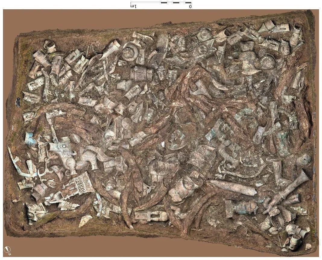三星堆遗址位于四川省广汉市西郊,地处成都平原北部沱江流域,面积约12平方公里。自1986年发现了1、2号祭祀坑,引起学术界高度关注。2019年底,四川省文物考古研究院三星堆工作站站长、北大考古1980级校友雷雨与三星堆遗址工作站副站长、北大考古2006级校友冉宏林在田野工作的过程中,在1、2号“祭祀坑”附近区域相继发现确认了6座不同规模的器物坑,编号K3-K8号坑。其后从2020年3月开始,四川省文物考古研究院,与北京大学考古文博学院等多家科研单位组成联合考古队,开始了自1986年后对三星堆遗址祭祀区的新一轮田野考古发掘和研究工作。