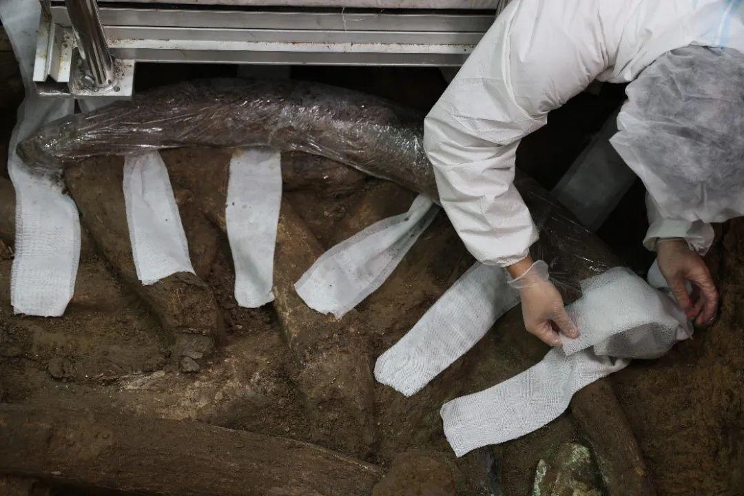 图 11 文保人员在8号坑中对象牙进行打包作业