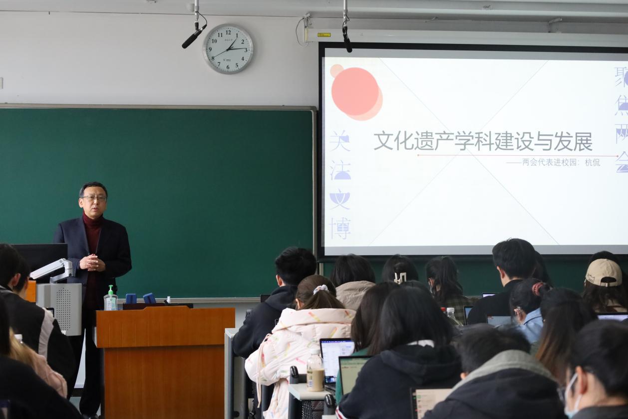 为深入贯彻全国两会精神,准确把握时代脉搏,引导学生了解我国考古事业发展现状,体悟新时代考古事业建设的发展与使命,3月17日下午,考古文博学院邀请第十四届全国人大代表、考古文博学院教授杭侃以“文化遗产学科建设与发展”为主题,在第二教学楼402室举办座谈会。学院党委书记陈建立主持座谈。