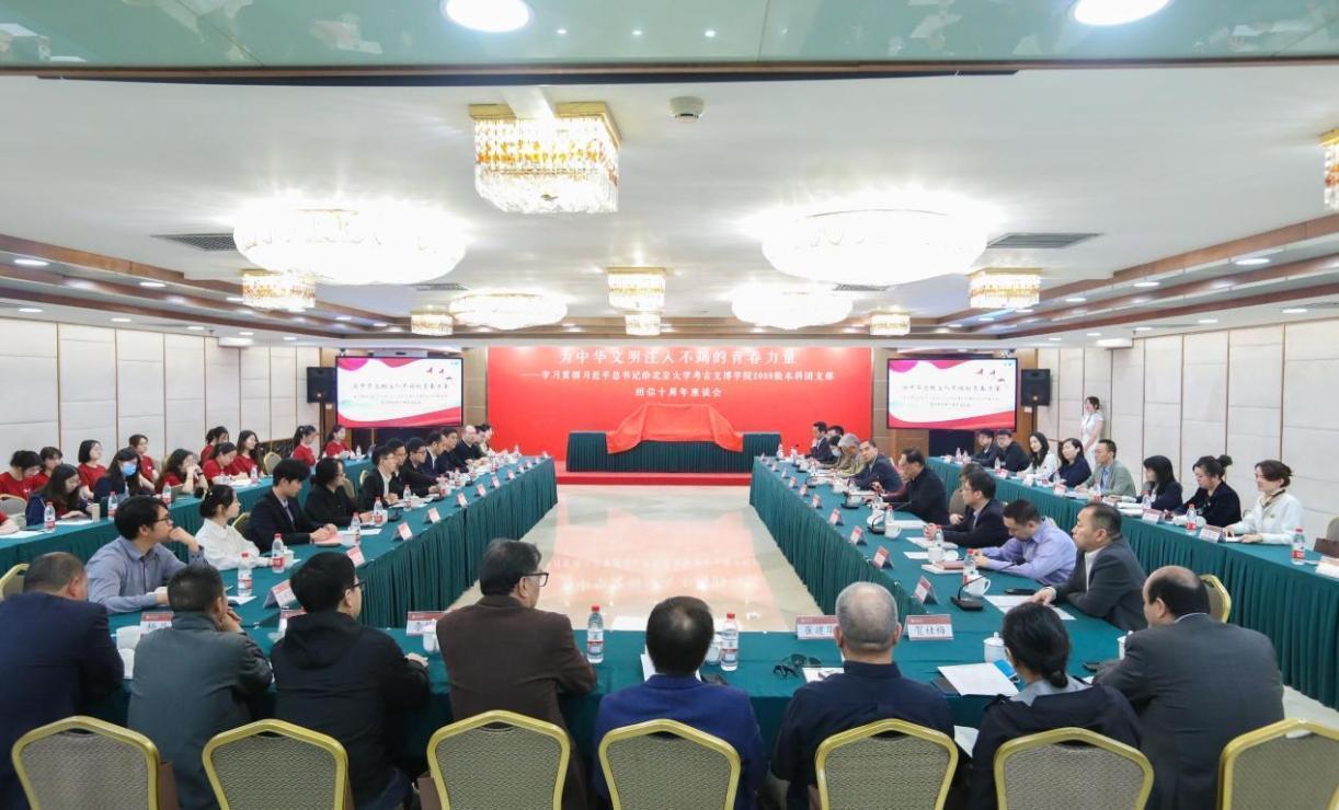 沈睿文作总结发言。他指出,习近平总书记给考古文博学院2009级本科团支部回信以来的十年,是一大批青年考古学子茁壮成长的十年,也是中国考古学蓬勃发展的十年。回望过去,北大考古的百年成就源于几代学者筚路蓝缕、薪火相传、励精图治。站在新百年新起点上,北大考古将继续坚持“实事求是,实干肯干,多出成果,多出人才”的原则和目标,确立现代教学理念,积极推进学科建设,做好学科特色布局,继续建设、完善北大特色、与时俱进、卓有成效的考古教育和教学体系,推动教学科研向纵深发展。北大考古将牢记历史和时代使命,自觉挖掘优秀传统文化,阐释中国道路和中国制度的必由之路,积极用考古材料讲好中国故事,努力提升学科影响力和国际话语权,积极谋求对世界考古的贡献,为弘扬中华优秀传统文化、增强文化自信提供坚强支撑。