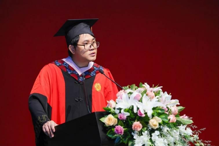 院友代表郑喆轩从自己离开北大这十年的变与不变谈起,以自己的工作经历为例,希望毕业生们面对茫然能够拥有“承担责任的勇气,以及发现美的能力和信心”,相信自己巨大的潜能,发现自己和世界之美,保持良好的心态,并衷心祝愿毕业生们在这个“文博考古的黄金时代”能有“胜却人间无数”的美好收获。