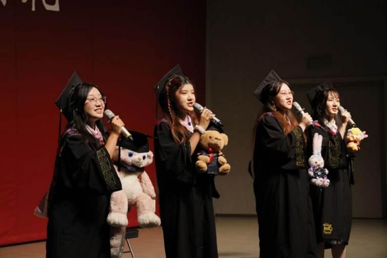 随后的开场节目中,四名毕业生用歌声唱出对往昔的不舍珍重和对未来的美好期待,毕业生们在“我们将奔向各自的那片碧海蓝天”前,怀揣着“看着天边似在眼前,也甘愿赴汤蹈火去走它一遍”的勇气,挥别过去,许愿希望之光永远在心间闪耀。