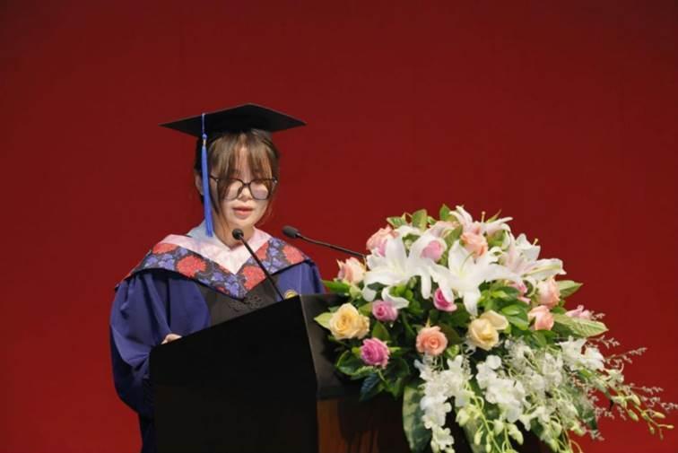 家长代表2020级本科生于清雅家长杨洁女士对学校为孩子们提供的优越学习条件和个性化培养指导、各位老师以高尚的育人情怀给予学生的帮助支持,以及各位家长对孩子们的理解、陪伴和奉献表示衷心的感谢。作为家长,她鼓励同学们始终保持对知识的渴望和对梦想的追求,用所学去探索未知,用智慧去点亮未来。
