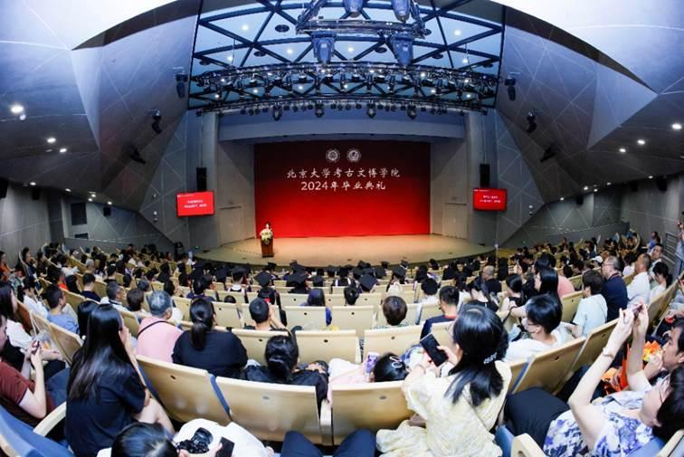 2024年6月30日上午,北京大学考古文博学院2024年毕业典礼于百周年纪念讲堂李莹厅隆重举行。院长沈睿文,副院长崔剑锋,党委副书记、副院长邓振华,副院长彭明浩,党委副书记曹蓓,北京大学学生资助中心副主任、考古文博学院2020级本科生班第二班主任李涛,学院教师代表,毕业生亲友和在校的2024届毕业生共100余人出席典礼,第十四届全国人大代表、四川省文物考古研究院副研究馆员郑喆轩作为院友代表、杨洁女士作为家长代表受邀出席本届毕业典礼。典礼由学院党委书记陈建立主持。