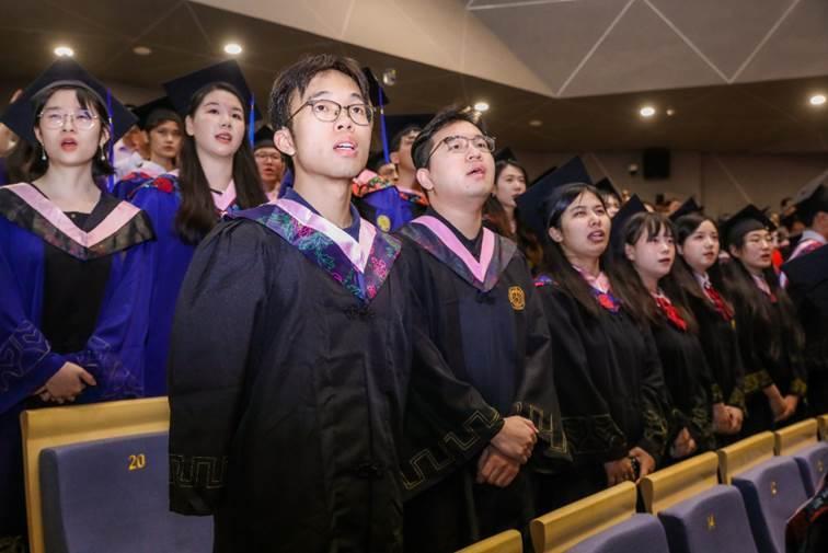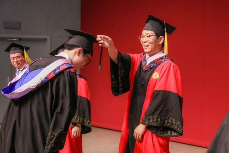 本科、硕士、博士生依次上台接受拨穗并合影。