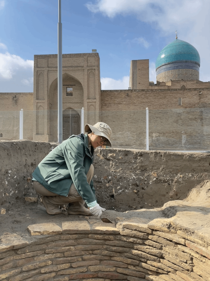2024年4月27日至6月30日,北京大学考古文博学院与乌兹别克斯坦撒马尔罕考古所、美国纽约大学古代世界研究所共同开展了乌兹别克斯坦布哈拉古城内城考古发掘工作,推动了我院境外考古发掘与研究的实践。我院教师王姝婧、博士后陈婧修参加了此次发掘。布哈拉绿洲自古以来便为丝绸之路的重要节点,布哈拉古城亦为中亚保存最为完好的城址之一,1993年即被联合国教科文组织列入世界文化遗产清单。布哈拉内城的遗存非常丰富,有公元前后至伊斯兰时期的房址、城墙、陶窑、水利设施等,具有较高的考古学价值。该遗址此前仅有零星发掘,较为系统的考古工作始于2019年。前人已初步探明了城墙结构、墓葬分布以及公元5世纪之后的居址形态。