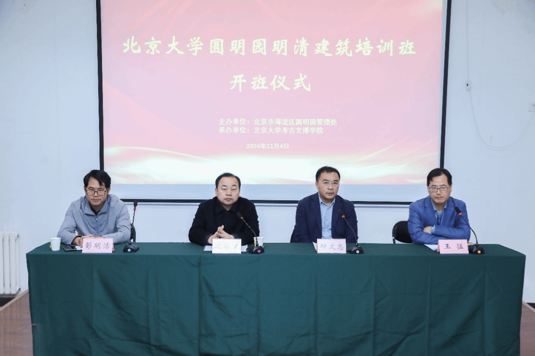 2024年11月4日上午,“北京大学圆明园明清建筑培训班”在圆明园管理处第六会议室顺利开班。圆明园管理处党组书记、主任邱文忠、北京大学考古文博学院院长沈睿文、副院长彭明浩、文物建筑教研室主任徐怡涛,以及本次培训班全体学员参加开班仪式。圆明园管理处副主任王猛主持开班仪式。