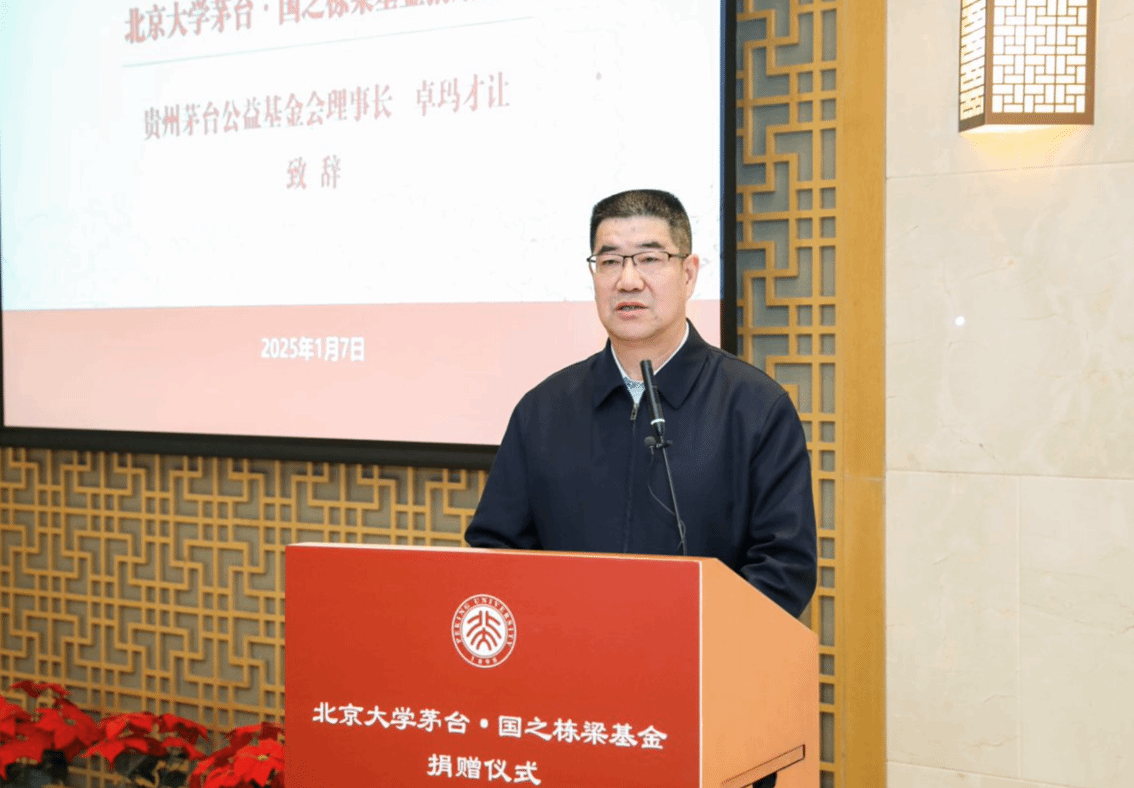 1月7日,北京大学茅台·国之栋梁基金捐赠仪式在北京大学教育基金会北大之友报告厅举行。中国贵州茅台酒厂(集团)有限责任公司、贵州茅台公益基金会捐资设立茅台·国之栋梁基金,助力北京大学考古学科的“双一流”学科建设,推动教育公益事业的发展,提升中华文明的影响力和感召力。