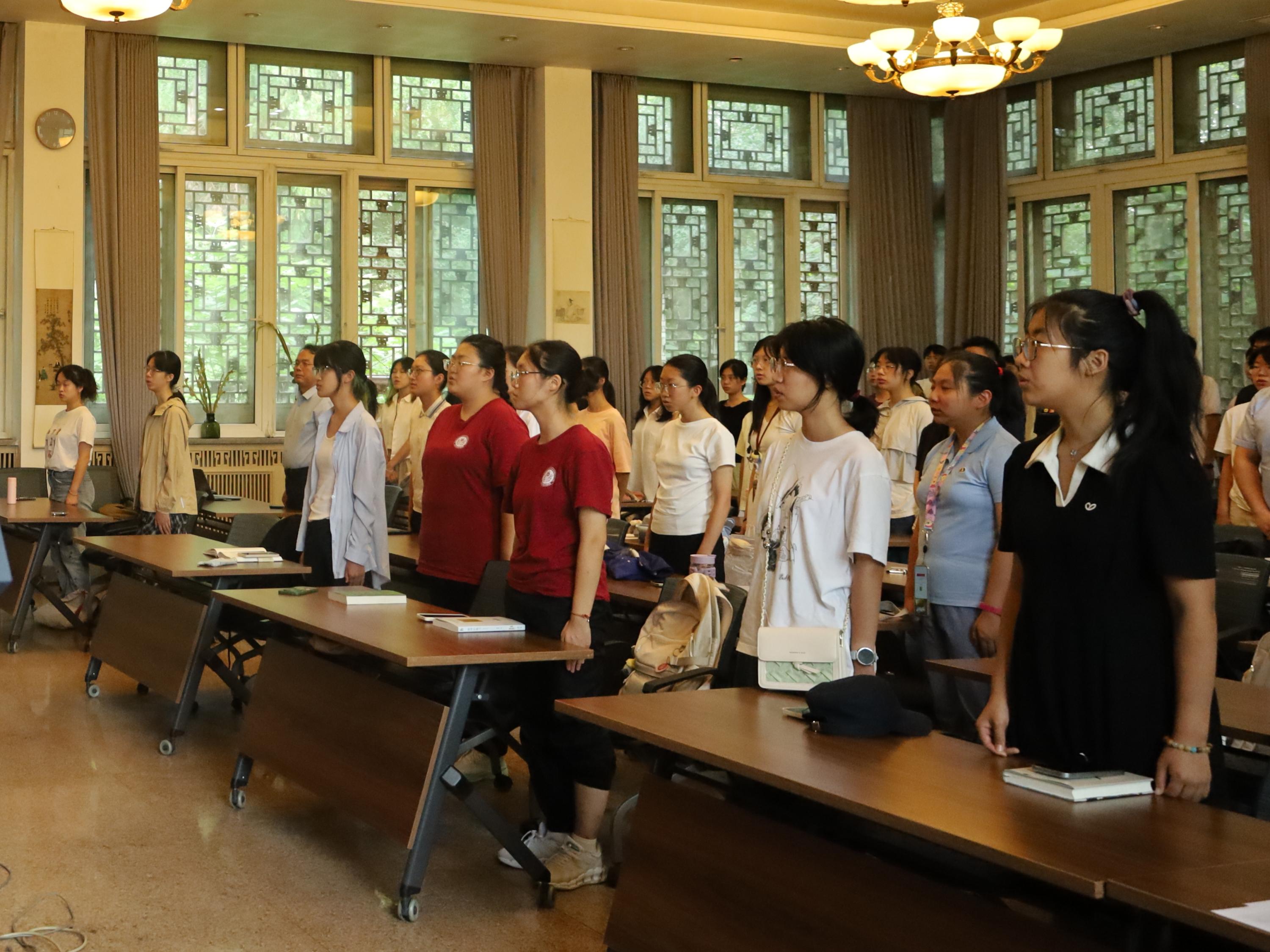 到场师生全体肃立,奏唱国歌