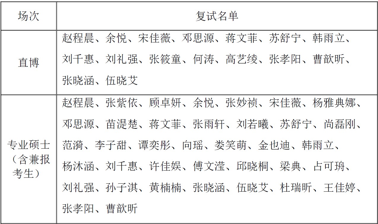 附:复试名单