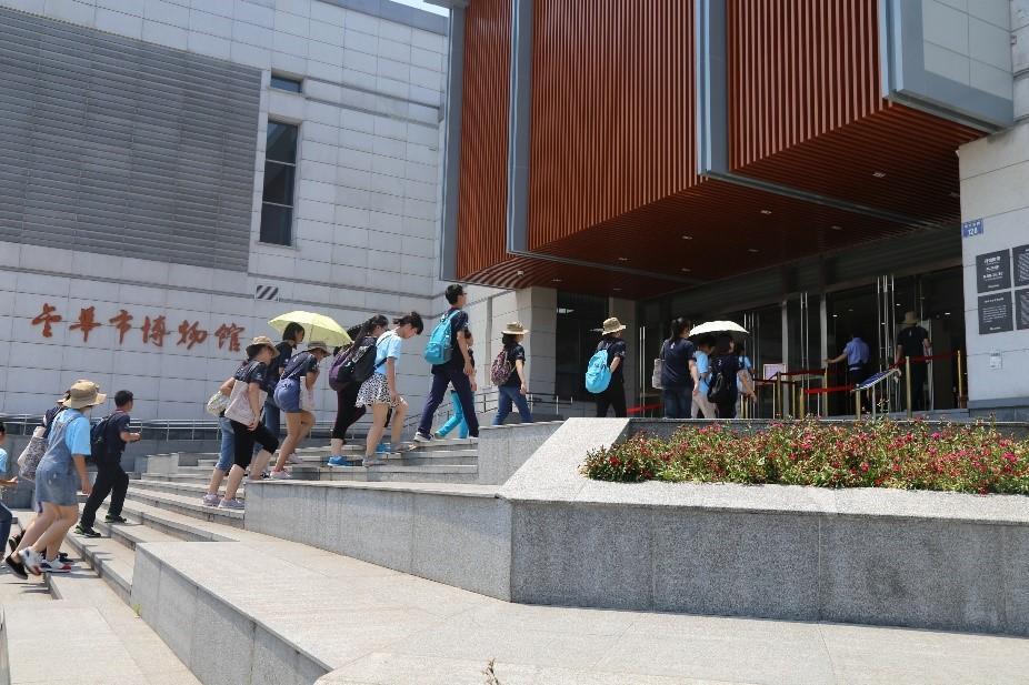 午饭过后,同学们来到了金华博物馆。金华古称婺州,因其“地处金星与婺女两星争华之处”得名金华。金华博物馆就是一座介绍金华人文地理风情的综合性博物馆。同学们在带队老师的带领下分组参观。在“百工之乡”展厅,同学们了解了金华红壤土地下的工商传奇,在“八婺古韵”展厅,同学们纵揽了金华从史前社会到近代时期的历史脉络;在“神奇大地”展厅,同学们领略了金华特色地质地貌和矿藏古物资源;在“乡土民风”展厅,同学们浏览了金华独特的宗教传统文化。金华博物馆展品陈列采用传统文物展陈和场景模型复原相结合的方式,让同学们在缓解博物馆疲劳的同时,多方面地去了解金华的人文与地理。