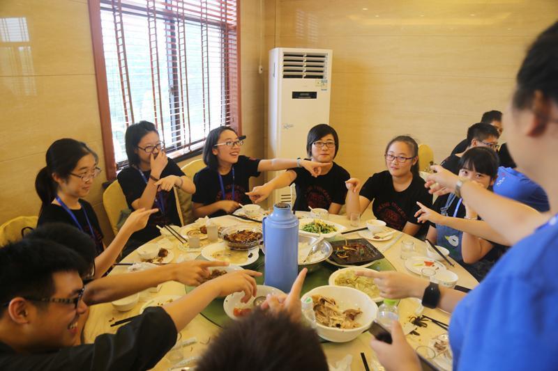 午饭时间来啦!大家围坐一桌,话题仍不离良渚。今天的饭菜征求了营员们的意见有所调配,尽量符合不同地区同学们的口味。吃过午饭,大家稍作休息,前往期盼已久的良渚遗址进行参观。