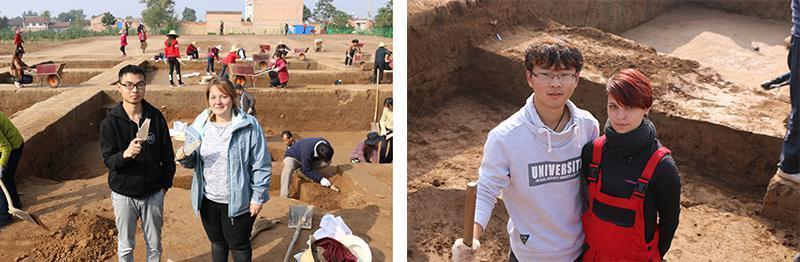 9、10月份,匈牙利短期交流生和日本驹泽大学访问学生陆续来到工地学习交流,在短短几周的相处时光里,我们是“坑友”更是朋友,虽语言不同、文化各异,但考古人心存万里、情义相通。