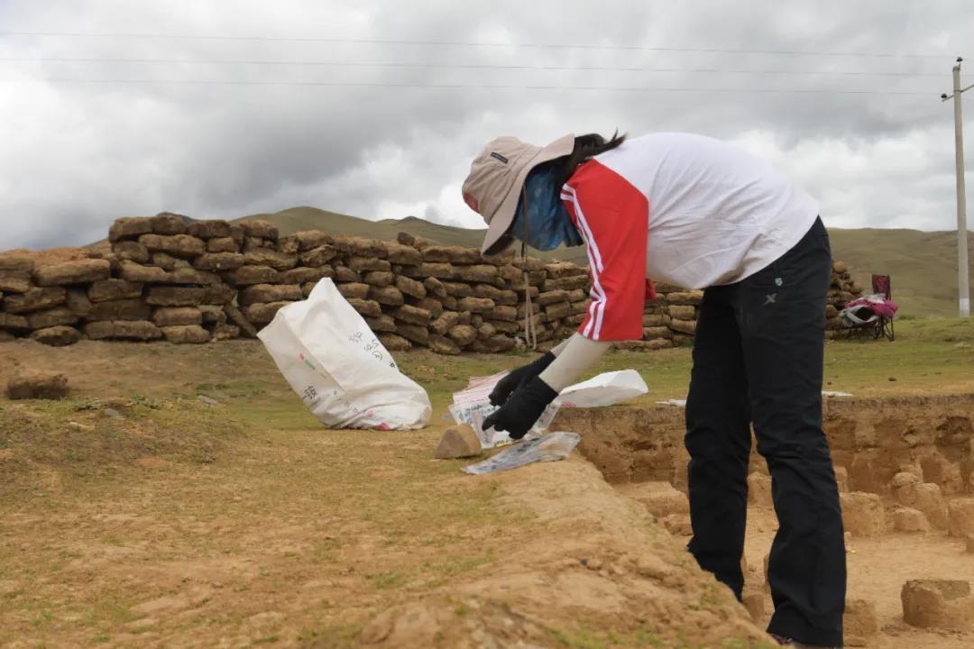 北京大学考古文博学院博士生冯玥在发掘工地