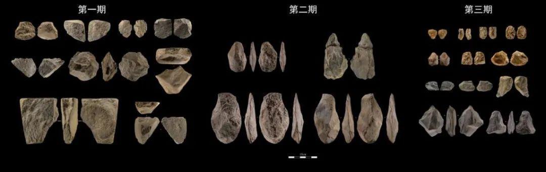 根据地层和出土遗物,可初步将皮洛遗址的旧石器遗存分为三期:第一期,④-⑧层,为砂岩石核-石片石器,工具组合以边刮器、凹缺器、锯齿刃器、砍砸器等为主;第二期,以第③层为代表,新出现了以板岩为主要原料制作精致的手斧、手镐、薄刃斧等器物类型;第三期,以第②层为代表,新出现了加工复杂的小型石英石制品,两面加工工具的尺寸也明显缩小。这一序列系统展示了遗址内“简单石核石片组合-阿舍利技术体系-小石片石器和小型两面器”的旧石器时代文化发展过程,建立了四川和中国西南地区连贯的旧石器时代文化发展序列,也为该区域其他遗址和相关材料树立了对比研究的参照和标尺。
