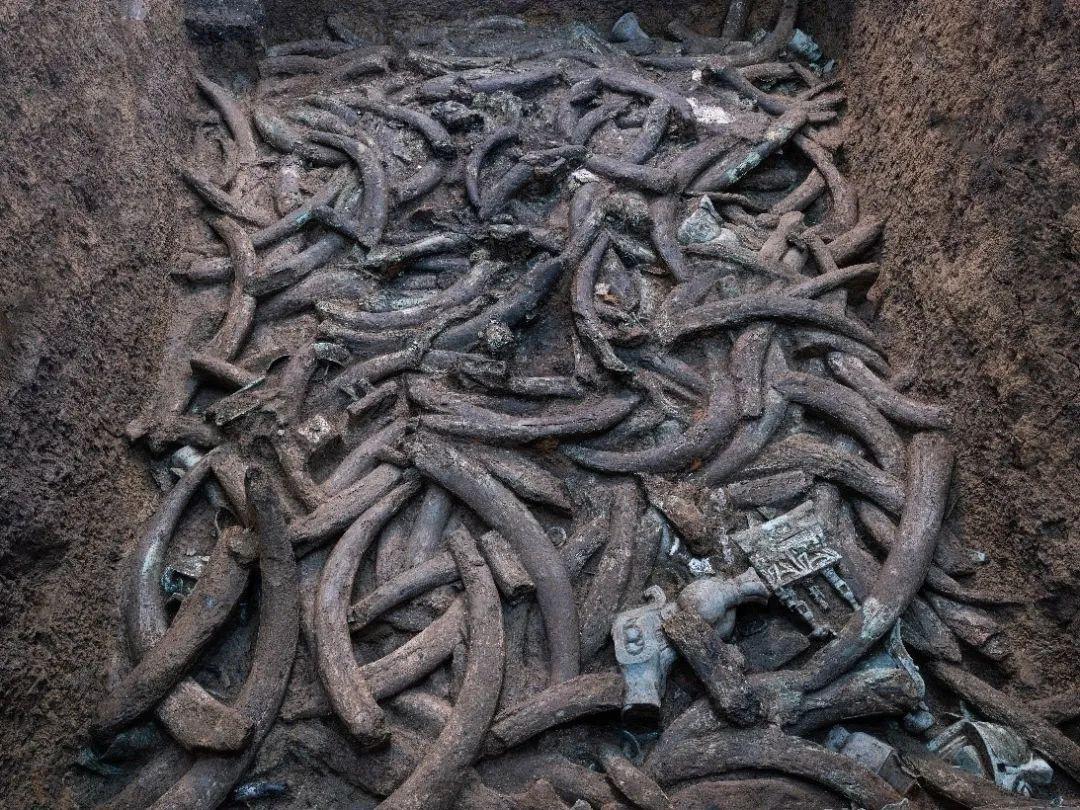 在此次田野工作中,北京大学三星堆考古队由赵昊副教授带队,直接负责8号坑的发掘工作。该坑位于发掘区东南角,面积近20平方米,是所有器物坑中面积最大的一座。目前,北大考古队在8号坑已经取得令人瞩目的一系列重大发现。目前,8号坑已经提取的编号文物或残片总数已超过5200余件。其中完成象牙提取370余根,玉器350余件、金器370余件。仅新暴露出土的青铜人头像就超过60件。