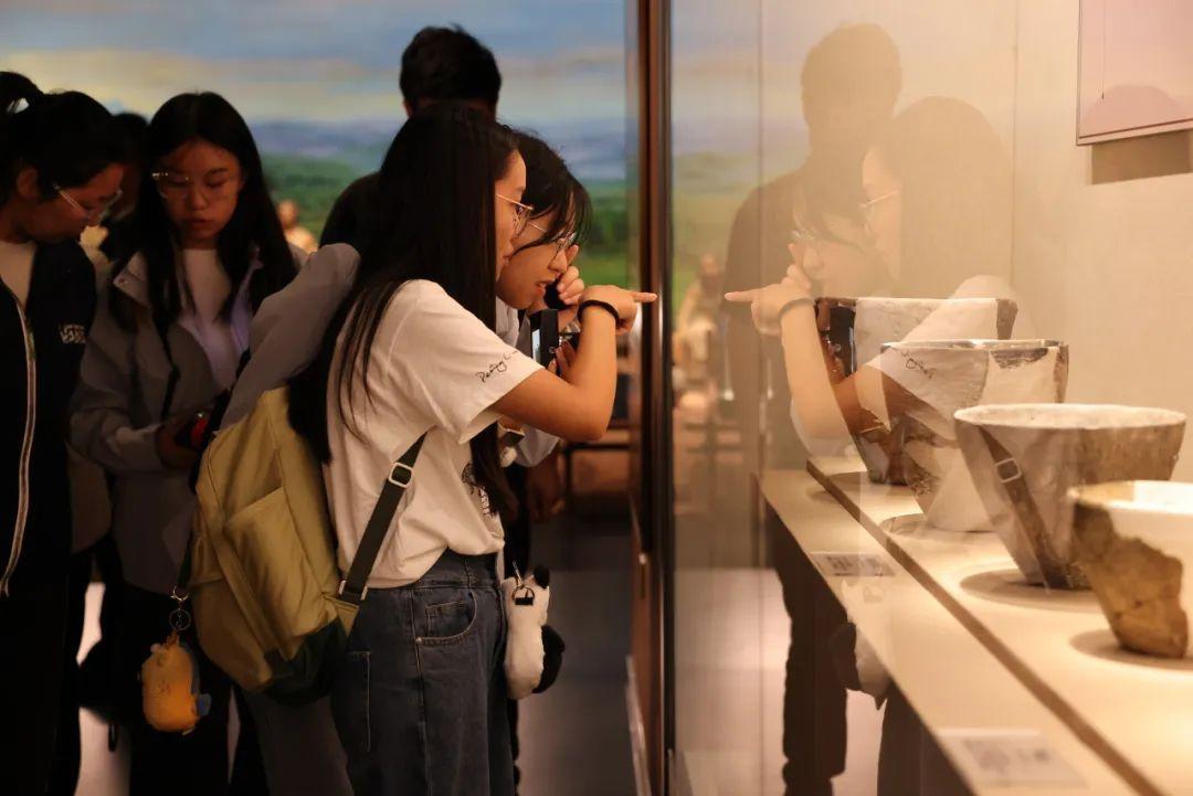 在牛河梁遗址博物馆,师生透过女神头像、玉猪龙等具有代表性的文物实体了解遗址的文化面貌和发掘过程,及其对于中华文明的影响。