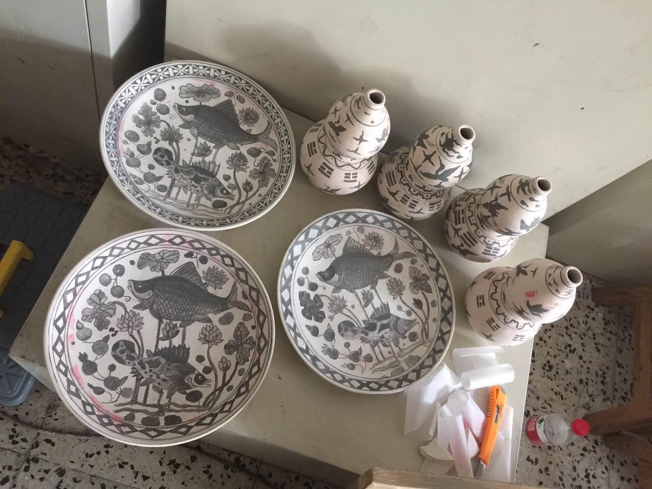 课堂讲授青花历史和绘制方法,运用多媒体增加教学的生动性、直观性。